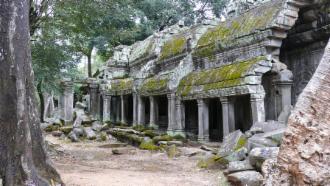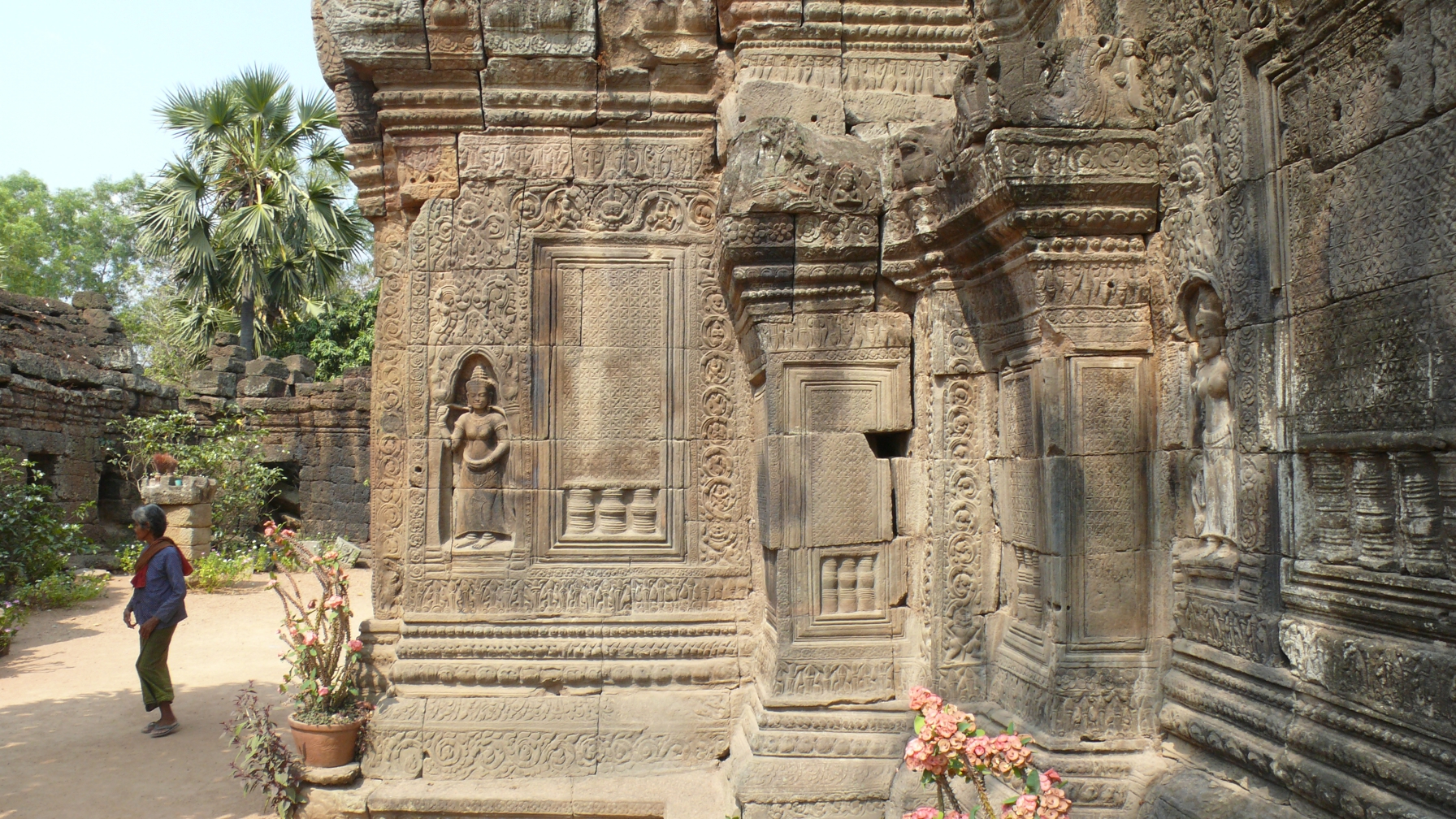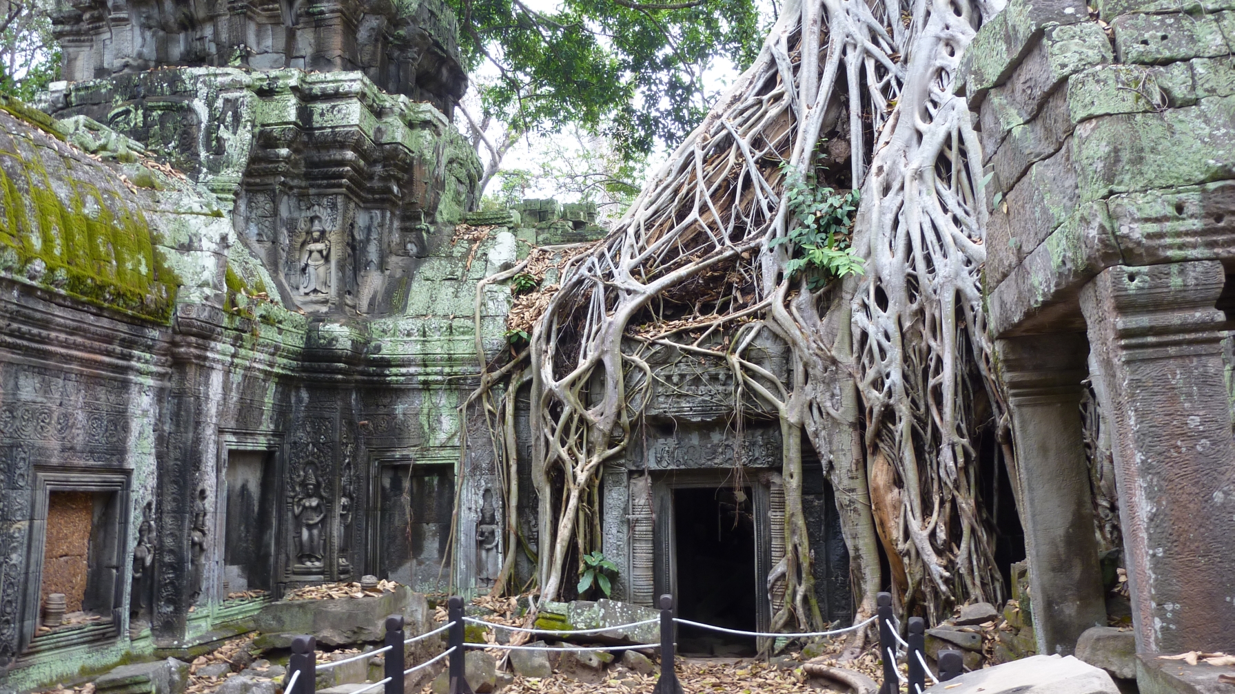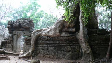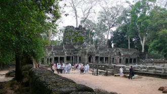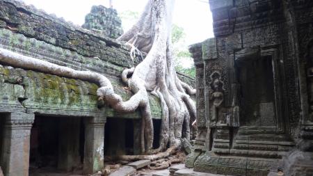 Ta Prohm wurde im 12./13. Jahrhundert wohl auf den Resten eines älteren Hindu-Heiligtums erbaut. Die Anlage ist teilweise stark zerfallen, strahlt aber eine angenehme und auch mystische Atmosphäre aus. Die aufwändigen Sandsteinreliefs sind bemerkenswert.