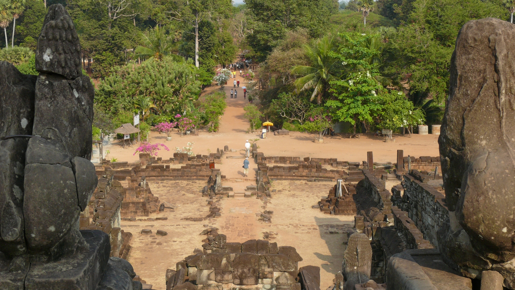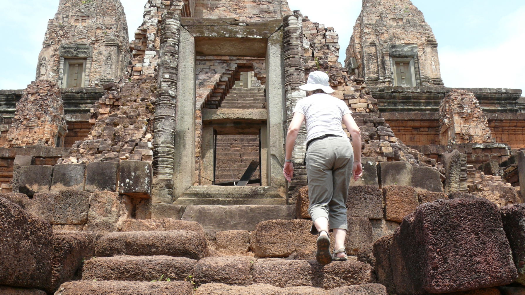 Pre Rup ist nicht so überlaufen wie Banteay Srei und bildet einen guten Abschluss. Noch einmal können wir hoch auf die Türme steigen, noch einmal haben wir Gelegenheit, die Architektur, die Symbolik und die Atmosphäre eines Khmer-Tempels auf uns wirken zu lassen. Hier können wir Abschied nehmen von dem geheimnisvollen Khmer-Reich, das uns ein paar Tage in seinen Bann gezogen hatte, und aus dem wir nun leider wieder auftauchen müssen.