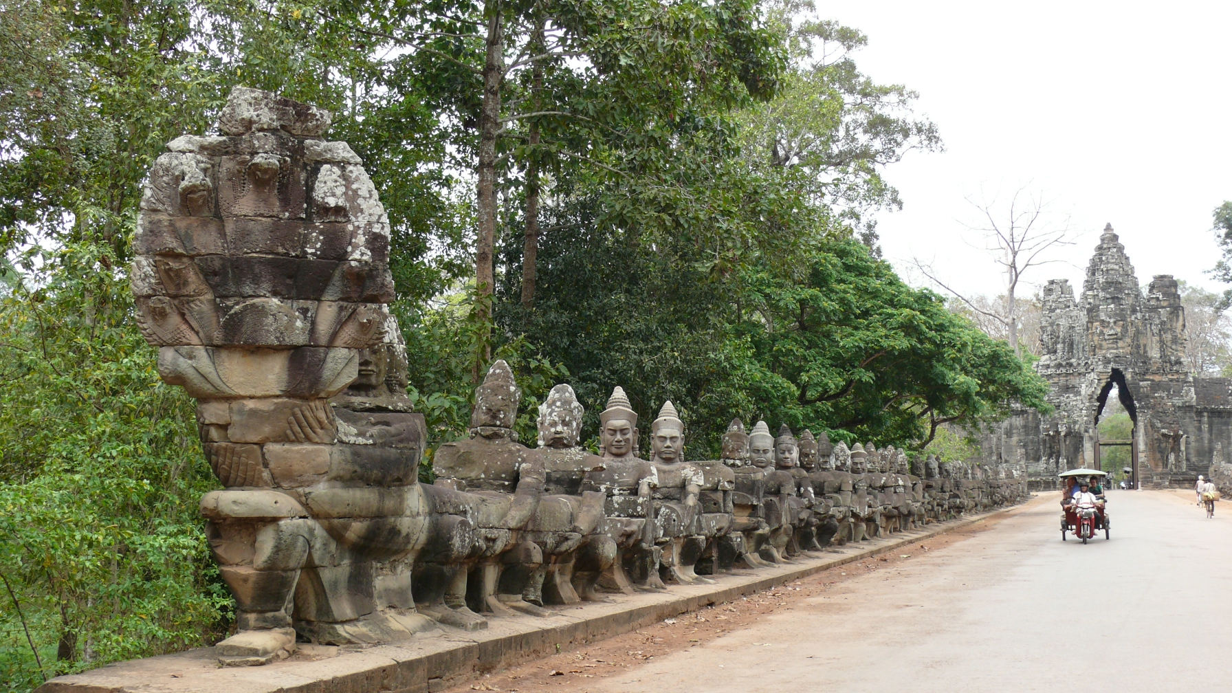 Die Zufahrt zum Südtor ist von eindrucksvollen Statuen gesäumt.