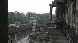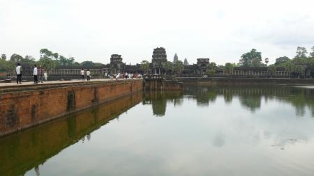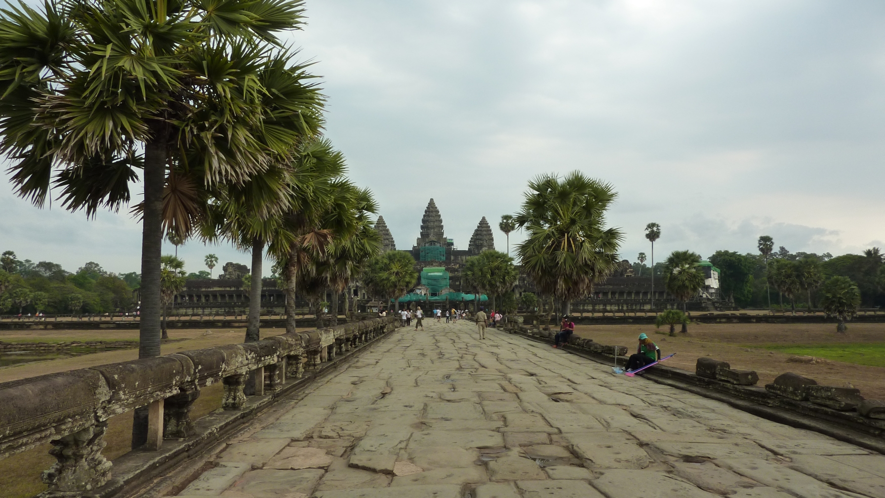 Nach dem Mittagessen in einem kleinen Restaurant in der Nähe fahren wir nach Angkor Wat, der imposanten Tempelanlage, die den Höhepunkt der Khmer-Architektur kennzeichnet. Der gesamte Komplex ist 195 ha groß und war eher eine göttliche Metropole als nur ein einfacher Tempel, Angkor Wat war aber auch eine eigenständige Stadt. Die Anlage beeindruckt mit einer klaren Architektur, die die zugrunde liegende Hindu-Kosmologie ausdrückt. Das Zentralheiligtum symbolisiert den Sitz der Götter auf dem kosmischen Berg Neru, dessen Haupt- und vier Seitengipfel durch die fünf markanten Türme von Angkor Wat dargestellt werden, und der Wassergraben symbolisiert den umgebenden Ozean. Mehr als 10.000 Menschen haben hier gelebt.