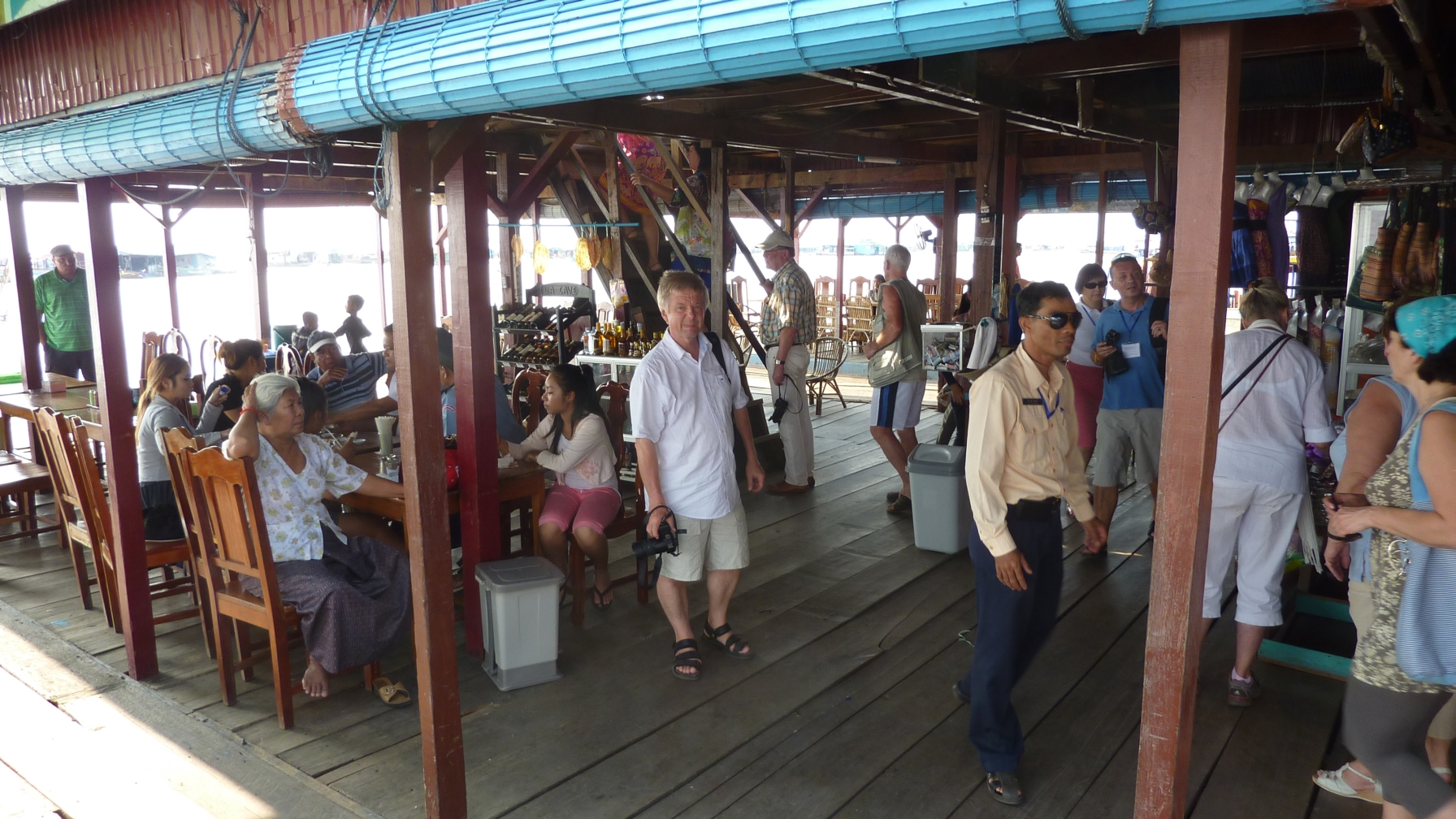 Es gibt auch ein Touristen-Info-Boot, auf dem wir Pause machen, bevor es mit dem Boot wieder zurück nach Chong Kneas geht, wo unsere Fahrt begonnen hatte.