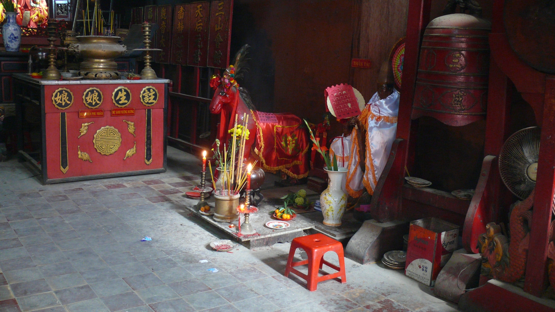 Nach der Fahrradtour geht es zu Fuß noch ein wenig weiter. Wir besichtigen eine prunkvoll ausgestattete chinesische Versammlungshalle, womit allerdings nicht eine einzelne Halle gemeint ist, sondern ein ganzer Komplex von Höfen, Gärten und Gebäuden. In Hoi An gibt es gleich mehrere solcher "Hallen" für die verschiedenen Minderheiten, die hier leben.