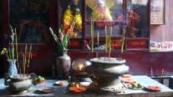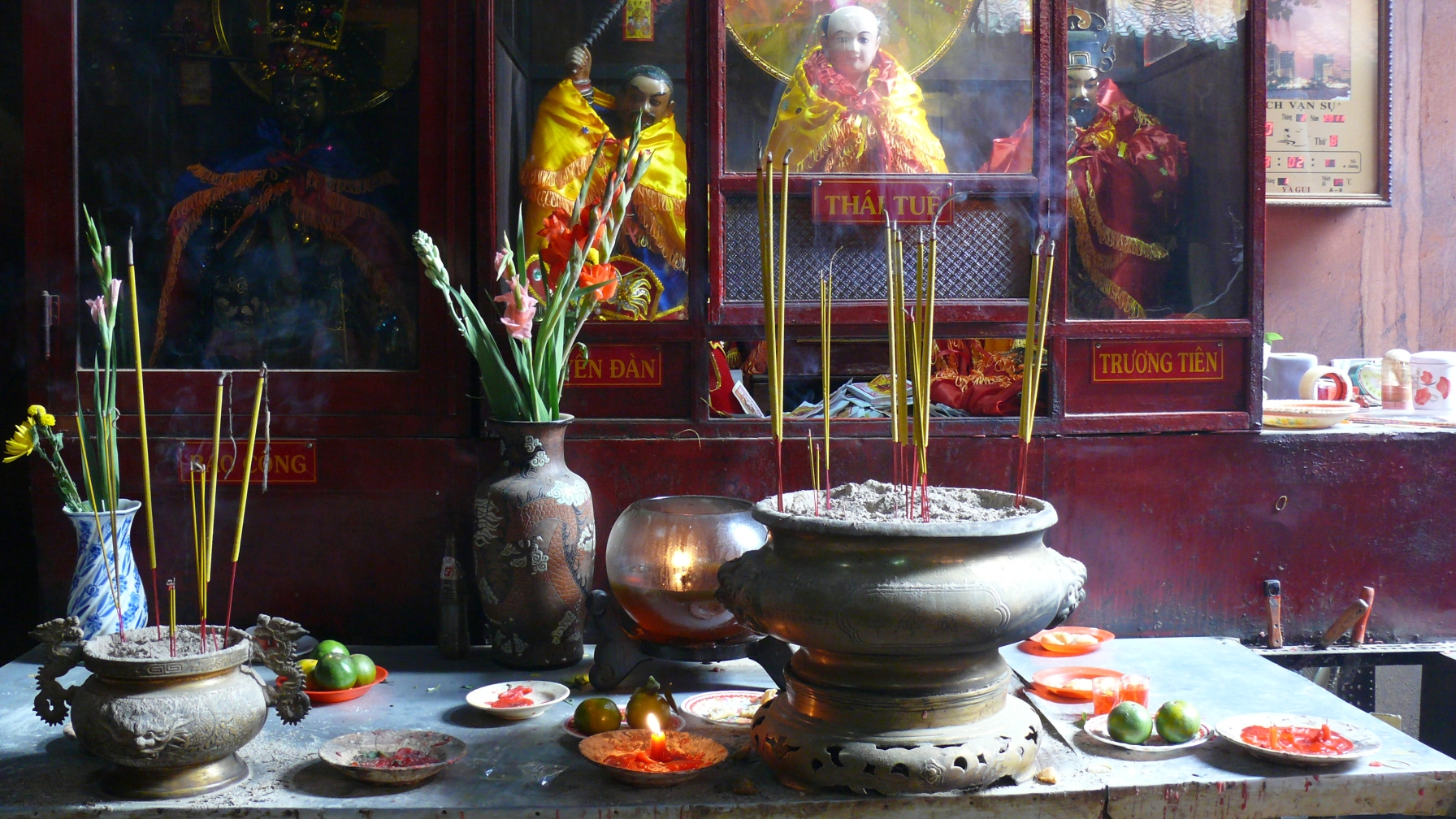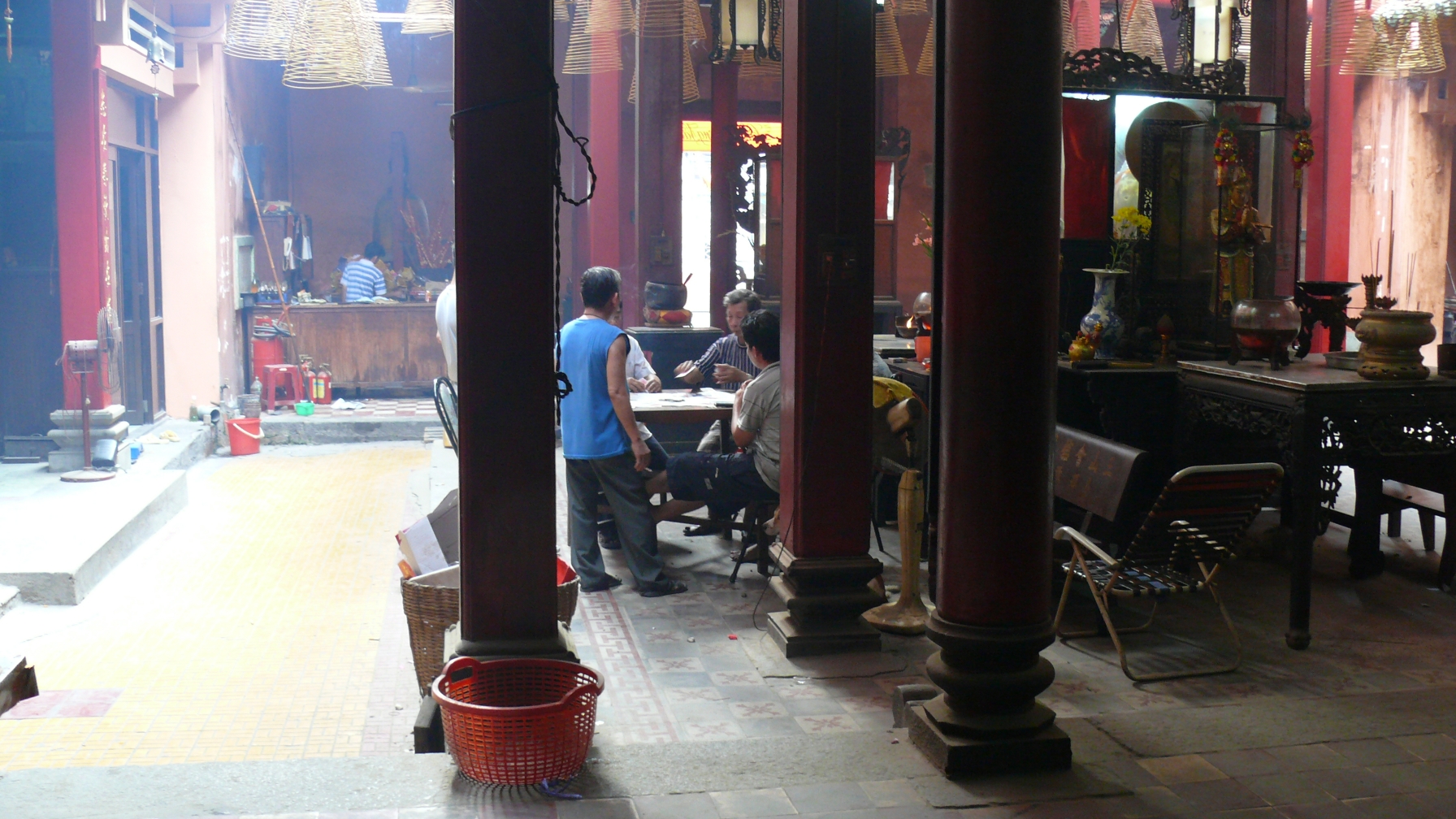 Zurück in Saigon, fahren wir in das chinesische Viertel – Cho Lon. Die Pagode Chua On Lang wurde im 18. Jahrhundert von Chinesen aus Fujian gestiftet. In dieser Tempelanlage werden sowohl daoistische als auch buddhistische Gottheiten verehrt, insbesondere aber Quan Am, die Göttin der Barmherzigkeit. Dieser Tempel wird weniger von Touristen als von Einheimischen besucht. Er wirkt etwas "krempelig", aber auch sehr bodenständig. Hier wird einmal mehr die enge Verzahnung von religiösem und Alltagsleben deutlich: Neben religiösen Symbolen findet man auch viel Weltliches, es scheint normal, dass hier Männer sitzen und Karten spielen.