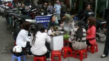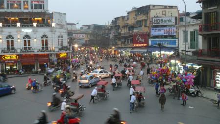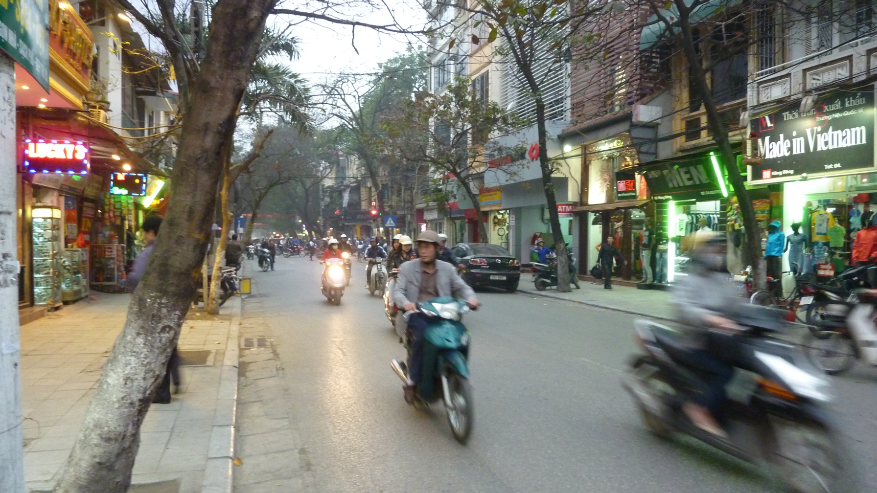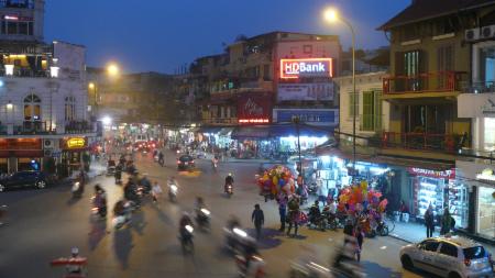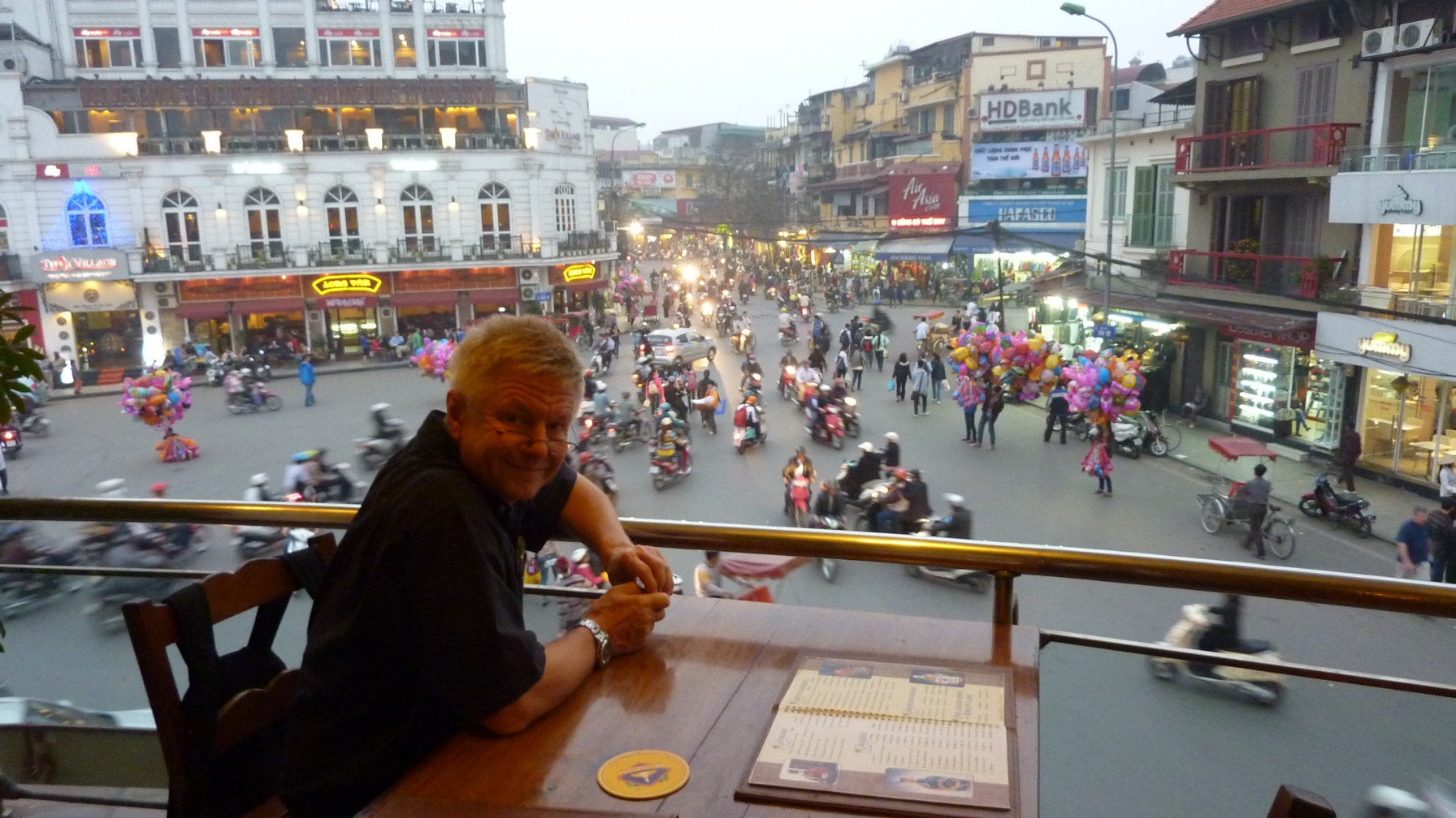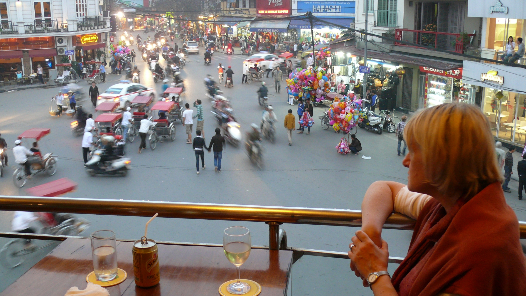 Am Nordende des Hoan-Kiem-Sees finden wir ein Restaurant, wo wir von einem Balkon im ersten Stock aus das quirlige Treiben auf der großen Kreuzung unter uns beobachten können. Hier nehmen wir Abschied von dieser interessanten Stadt, von der wir am Ende doch viel zu wenig gesehen haben. Und hier können wir ein letztes Mal best