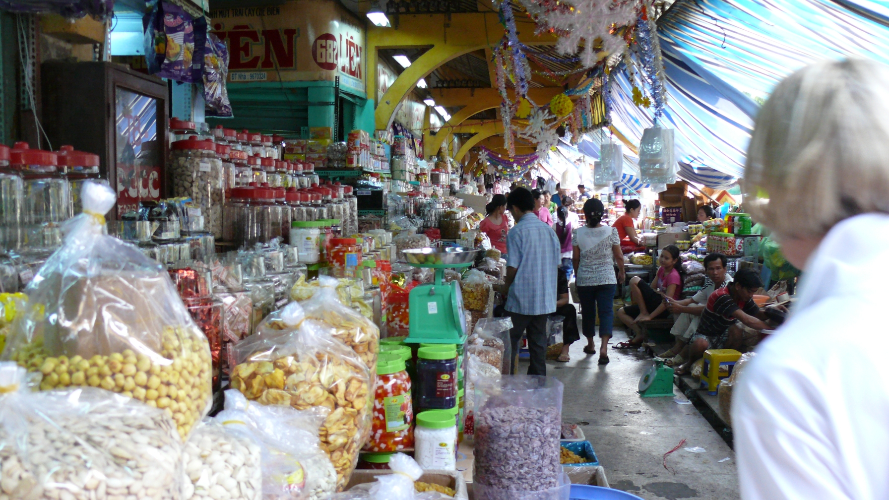 In das Alltagsleben in HCMC stürzen wir uns auf dem Ben Than Markt, der auf 11.000 m² alles bietet, was ein Haushalt so braucht.
