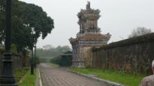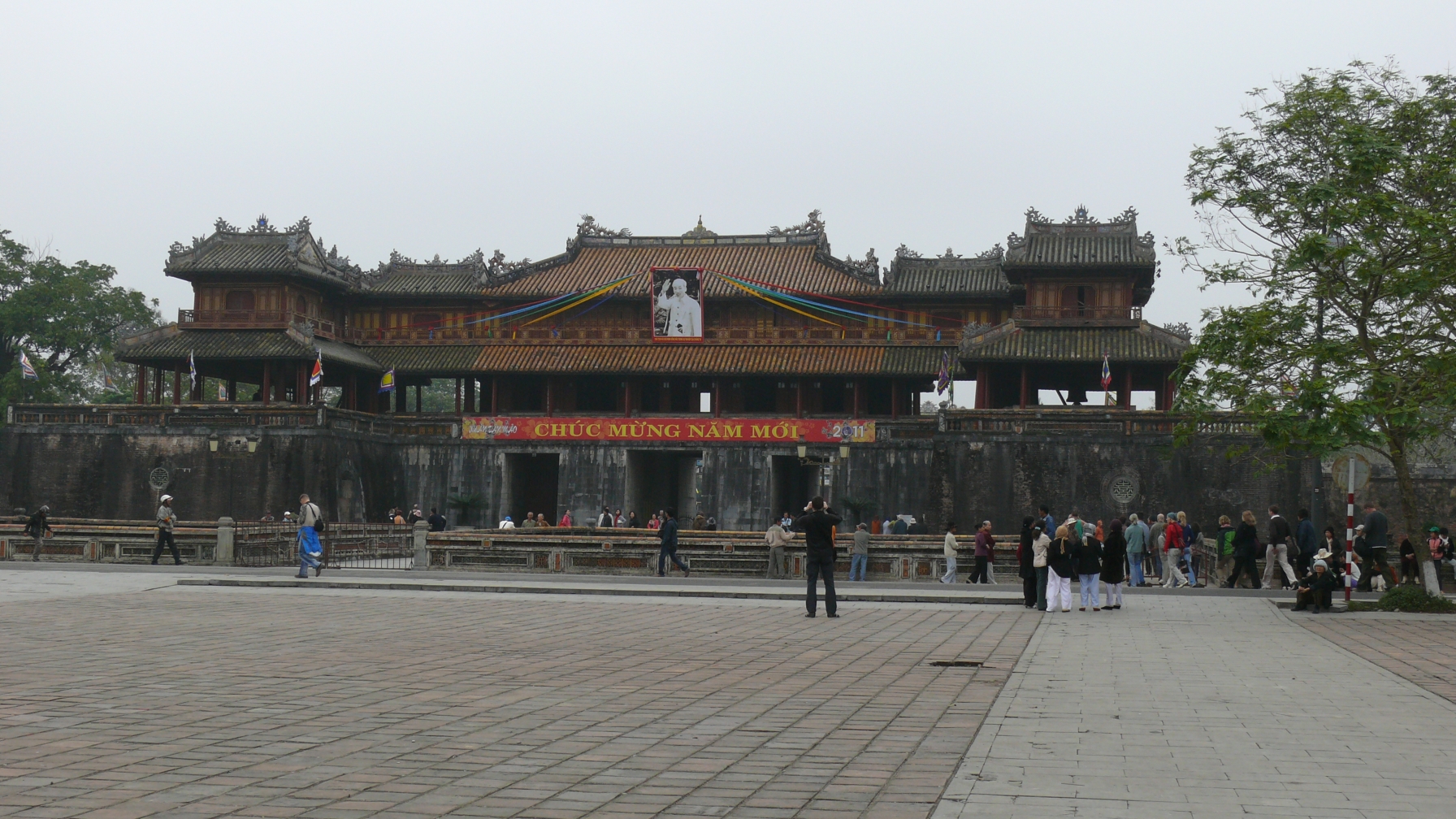 Hue, die alte Kaiserstadt der Nguyen-Dynastie, ist vom Parfümfluss in zwei Teile zerschnitten. Das nördliche Ufer wird dominiert von der Zitadelle, in der sich auch der alte Kaiserpalast befindet, der im 19. Jahrhundert nach dem Muster des Kaiserpalastes in Peking erbaut wurde. In der Mitte des Palastes liegt die verbotene Stadt, die dem Herrscher vorbehalten war. Sie ist umgeben von mehreren, durch Mauern geschützte Bereiche, in denen sich die Gebäude für die Familie, den Hofstaat und die Beamten befinden. Der letzte Kaiser von Vietnam war Bao Dai, der 1945 abdanken musste.