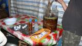 Am Ufer besichtigen wir eine kleine Manufaktur, die Produkte aus Reis und Kokosnüssen herstellt. Die Bonbons sind handgefertigt und auch einzeln handverpackt, und es gibt Reisschnaps mit Schlange.