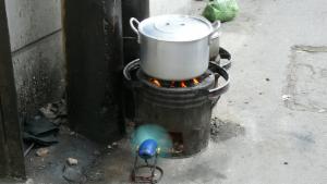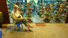 Da sich der Bootsanleger am Ende dieser Fahrt in der Nähe unseres Hotels befindet, verzichten wir auf den Bus und laufen heim. Oft müssen wir den schmalen Bürgersteig verlassen, weil er mit Mopeds zugestellt ist oder mit den kleinen Hockern, auf denen die Leute hier gern ganz dicht am Straßenrand sitzen. So langsam verstehen wir, warum viele hier einen Mundschutz tragen. Wer sich tagtäglich in diesen Abgaswolken des unablässig brodelnden Verkehrs aufhält, kann wohl anders nicht überleben.