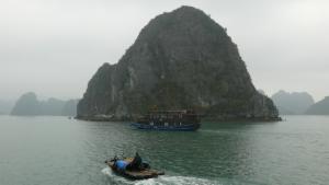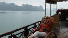 Unser Guide ist schwer einzuschätzen. Er hat einige Jahre in Deutschland gelebt, hat aber eine nur schwer verständliche Aussprache. Er kümmert sich gut um die Gruppe, wirkt manchmal allerdings etwas verkatert. Sehr gut zu gehen scheint es ihm mit der vietnamesischen Tradition (oder ist es nur seine eigene?), nach jedem Essen einen Reisschnaps zu trinken.