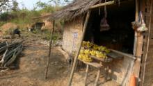 Auf dem Weg, der zur Grabanlage führt, verkaufen Kinder für ein paar Dong Bananen.