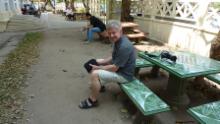 Weiter im Süden ist die Straße gesäumt von zahllosen Straßencafés, viele davon mit Hängematten, in denen man sich ausruhen kann. Dort, wo wir Pause machen, ist es leider nicht ganz so einladend.