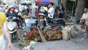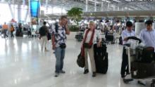 Spannend wird noch einmal die Fahrt zum Flughafen. Zunächst ist es nicht einfach, vom Straßenrand aus ein Taxi zu bekommen. Die meisten Fahrer reagieren auf unsere Zeichen gar nicht, andere fahren weiter, als sie hören, es soll zum Flughafen gehen. Aber dann hält endlich einer, und er ist sowohl mit der Fahrt zum Flughafen als auch mit unserem genannten Preis (wissen wir von der Hinfahrt) einverstanden. Er fährt sogar in die richtige Richtung – zumindest zunächst einmal, aber er macht einen sehr unsicheren Eindruck, fragt immer wieder nach, wo wir hinwollen. Und er fährt auch sehr unsicher, mal schnell, mal langsam, eher unmotiviert. Wir werden schon etwas unruhig, und als er die Schnellstraße zum Flughafen verlässt, werden wir richtig nervös. Irgendwo am Straßenrand bleibt er stehen und beginnt neue Verhandlungen mit uns über das Ziel. Vielleicht hatte er vergessen, wo es hingehen sollte. Als wir ihm versichern, dass wir zum Flughafen wollen, fährt er wieder zurück auf die Schnellstraße. Die nächsten Probleme gibt es an der Mautstelle. Er will, dass wir die Maut bezahlen, wir wollen, dass er sie bezahlt. Wir gewinnen, und die Fahrt geht weiter. Ich überlege schon, was wir tun, wenn er uns hier mitten in Pampa rausschmeißt – aber dann bringt er uns tatsächlich zum Flughafen. Als wir angekommen sind, fängt er an zu lachen und sagt immer wieder „Airport“ „Airport“, als habe er selbst nicht daran geglaubt, dass er den Flughafen findet. Er will mehr Geld von uns als verabredet, aber wir geben ihm die Summe, die wir auch auf der Fahrt in die Stadt bezahlt haben und verschwinden ins Flughafengebäude. Und hier wartet schon der nächste Schreck – hier waren wir noch nie, und von hier aus sind wir auch heute Mittag nicht in die Stadt gefahren. Hat Hanoi vielleicht mehrere Flughäfen? Oh Schreck! - Aber wir sind glücklicherweise nur im nationalen Teil des Flughafens, und es kostet uns lediglich einen kleinen Fußweg, um in den internationalen Bereich zu gelangen. Die Gepäckaufbewahrung hat auch noch geöffnet, wir bekommen unser Gepäck zurück, und nun müssen wir nur noch ein paar Stunden bis zum Abflug totschlagen. Der Flughafen von Hanoi bietet nicht allzu viele Unterhaltungsmöglichkeiten, also ist es ziemlich öde. Interessantes Detail: In dem Restaurant, in dem wir noch etwas essen, laufen hinter der Leuchtreklame Ratten herum.