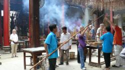 Zurück an der Straße fallen die bunten Sträuße von Räucherstäbchen auf, die hier verkauft werden.