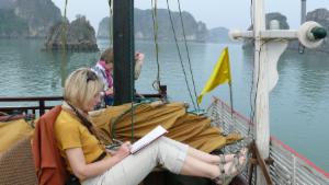 Auf der Rückfahrt versucht die Bootsbegleiterin, uns Schmuck und Seidenwaren zu verkaufen.
