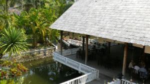 Für das Abschiedsabendessen in Bangkok haben wir am Pool reserviert, hier stehen kleine Pavillons mit Tischen und Stühlen.