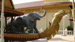 Auch das Nationalmuseum befindet sich in einem prachtvollen Bau. Wir beschränken uns bei der Besichtigung auf einige sehr schöne Buddhafiguren und Darstellungen aus dem Hinduismus, z.B. von Shiva und Vishnu (Der in Kambodscha gelebte Buddhismus zeigt deutliche Einflüsse aus hinduistischen Strömungen.).
