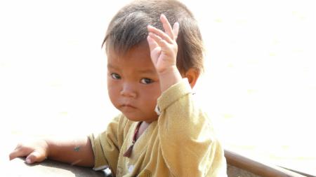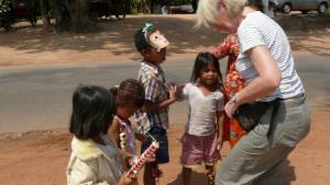 Hier wird unser Mitleid besonders stark auf die Probe gestellt. Die ganze Zeit werden wir von Kindern verschiedenen Alters begleitet, die uns Dinge verkaufen wollen, die uns Lotusblumen schenken, die uns Komplimente machen wegen unserer hellen Haut oder die einfach nur neben uns her laufen und monoton „One Dollar, one Dollar“ sagen. Am Ende bin ich alle Lippenstifte und Crèmedöschen los, die ich in der Tasche hatte. Ich habe sie den Mädchen geschenkt, weil ich ihnen kein Geld geben wollte. Einige von ihnen sprechen etwas englisch. Sie erzählen uns, dass sie zur Schule gehen, ein paar Stunden am Tag. Ein Lehrer bedient hier jeweils zwei Klassen pro Tag, eine vormittags und eine nachmittags.
