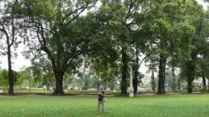In einer Bar finden wir Logenplätze in der ersten Etage, von wo aus wir das Treiben beobachten. Besonders skurril wirkt ein Parkwächter, der mit scheinbar viel zu großen Stiefeln in John Wayne Manier hin und her läuft und darauf aufpasst, dass niemand den Rasen betritt. Auch uns hatte er schon mit seiner Trillerpfeife von dort verscheucht, und er ist sich nicht zu fein, den Leuten schimpfend und pfeifend hinterher zu rennen, wenn sie nicht gleich reagieren.