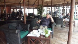 Es bleibt weiter entspannt. Nach einem späten Frühstück fahren wir mit dem Shuttlebus zurück zum Flughafen, checken ein, und nun sitzen wir in einem Café und warten auf den Abflug.