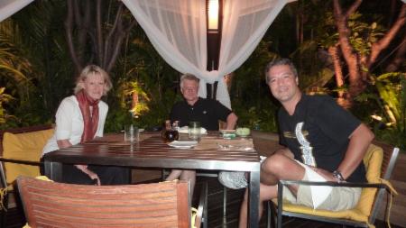 Glücklicherweise ist der Urlaub noch nicht ganz zu Ende. In Bangkok wartet Tobi auf uns, unser Neffe, den wir seit acht Jahren nicht mehr gesehen haben. Nun wollen wir hier ein paar gemeinsame Tage verbringen. Von dem Luxusapartment, das wir – eher zufällig – für uns drei gemietet haben, sind wir völlig begeistert (Ascott Sathorn). Dem Apartmenthaus angegliedert ist ein Restaurant. Es hat glücklicherweise noch geöffnet, und nachdem wir erreicht haben, dass die Klimaanlage herunter gedreht wird, ist es richtig gemütlich – natürlich gibt es viel zu erzählen.